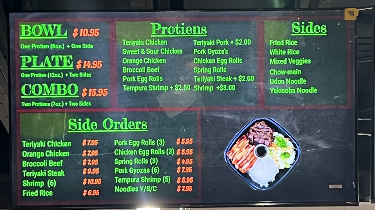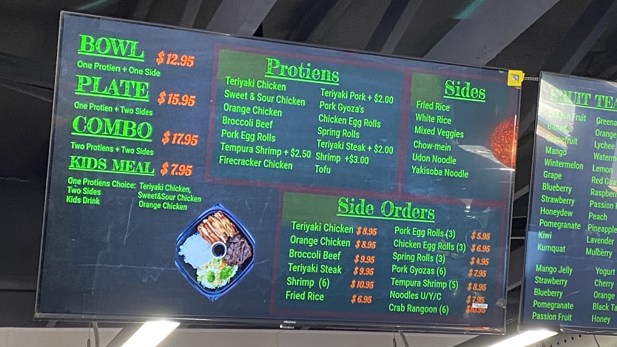 From a reviewer’s perspective, the menu at Mya's Teriyaki offers a concise yet flexible selection that highlights comfort food with an Asian-inspired twist. One of the most enjoyable aspects is the Create Your Own Boba Drink option, which allows guests to personalize their drink with refreshing flavors such as Grapefruit, Dragon Fruit, Banana Honeydew, and Papaya, making it a fun and customizable complement to the meal. The main menu is thoughtfully structured into Bowl, Plate, and Combo choices, giving diners the freedom to choose portion sizes and formats that suit their appetite. To round out the experience, the Side Orders stand out with familiar favorites like Teriyaki Chicken, Orange Chicken, Broccoli Beef, Teriyaki Steak, and Shrimp, all of which emphasize savory, well-balanced flavors. Overall, the menu may be simple, but it is clearly designed for convenience, variety, and satisfaction, making Mya’s Teriyaki an appealing spot for both quick meals and relaxed dining.